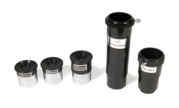 Данный рефлектор комплектуется тремя окулярами и линзой Барлоу 3х, которые повышают его кратность до максимально полезного значения в 152х. В комплект также входит лунный фильтр. Он существенно гасит яркость блеска от лунной поверхности, что позволяет с комфортом вести за ней наблюдения и открывать большое количество деталей ее рельефа. Bresser National Geographic 76/700 EQ можно также успешно использовать и для наземных наблюдений: для того чтобы ваш телескоп превратился в мощную зрительную трубу, достаточно оснастить его оборачивающей призмой (не входит в комплект).